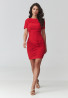 Dopasowana sukienka mini z marszczeniami i aplikacją czerwona M937