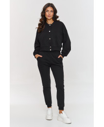 Prosty, a zarazem wyjątkowo stylowy – komplet z bluzą z napami to doskonała propozycja dla miłośniczek minimalizmu i wygody. Bez kaptura, ale z maksymalnym komfortem – bluza o luźnym kroju z subtelnymi napami sprawia, że zestaw jest niezwykle uniwersalny i pasuje na wiele okazji. Spodnie dresowe mają luźny krój oraz ściągacze przy nogawkach, które zapewniają idealne dopasowanie i komfort przez cały dzień. Elastyczny pas sprawia, że spodnie są wygodne i nie krępują ruchów. Swobodna bluza ma klasyczny fason bez kaptura co sprawia, że świetnie układa się pod płaszczem czy kurtką. Dodatkowo ma stójkę zdobioną stylowym detalem w postaci metalowych guzików. Dzięki naturalnemu materiałowi ten komplet to doskonały wybór zarówno na luźny dzień w domu, szybkie zakupy, jak i spotkanie z przyjaciółmi czy wycieczki rowerowe . Możesz nosić go jako całość lub łączyć poszczególne elementy z innymi ubraniami, tworząc wiele modnych zestawów. Zainwestuj w wygodę i ponadczasowy styl – dresowy komplet z bluzą i spodniami to must-have w każdej szafie! Model uszyty w pięciu ponadczasowych kolorach: czarny, jasny beż, błękitny, ecru i mokka.