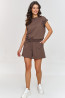 Ten dresowy komplet to połączenie wygody i modnego wyglądu, idealny na letnie dni i aktywności na świeżym powietrzu. Bluzka o luźnym kroju wykończona ściągaczami zyskuje na elastyczności i uniwersalności. Natomiast raglanowe rękawy optycznie wyszczuplają górną linie ramion oraz zapewniają szeroki zakres ruchu. Krótkie spodenki mają elastyczny pas, który zapewnia wygodne dopasowanie, a luźny fason nie krępuje ruchów. Kieszenie po bokach to praktyczny dodatek, który zwiększa funkcjonalność. Kant w szortach nadaje im bardziej wyszukanego charakteru jednocześnie dodając stylizacji nieco bardziej formalnego wyrazu. Taki detal sprawia, że stają się bardziej eleganckie, idealne zarówno na casualowe, jak i nieco bardziej oficjalne okazje. Ponadto takie przeszycie na nogawkach wydłuża optycznie nogi i sprawia, że szorty mają bardziej smukłą formę, co jest korzystne dla sylwetki. Dresowy komplet to połączenie subtelnej elegancji ze stylowym designem jednocześnie zapewniając maksimum wygody i ponadczasowy charakter. Dostępny w kilku wariantach kolorystycznych: baby pink, czarny, czekoladowy, indygo, jasny beż i śmietankowy.