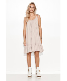Vasaros suknelė, pasiūta iš malonaus liesti sportinio trikotažo. Modelis galimas šiomis spalvomis: kreminė, moka, juoda, purvinai rožinė, šviesiai smėlio, koralinė. Suknelė turi plonas petnešėles, užbaigtas romantišku raišteliu. Mergaitišką suknelės stilių papildo apačioje įsiūtas raukinys. Suknelė yra labai patogi ir laisva. Ją galima dėvėti laisvai, surišti diržu, odiniu dirželiu ar vasarine skarele. Derinkite ją su madingais kaubojiškais batais ar mėgstamais sportiniais bateliais. Kiekviename derinyje suknelė atrodys puikiai. Todėl dėvėkite ją taip, kaip jums patinka ir kaip jaučiatės. Juk mada skirta tam, kad išreikštumėte save.