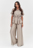 Elegancki komplet damski z luźną bluzką i szerokimi spodniami mokka C54