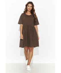 elegantiska suknele maxi su marszczeniem ir iskirpte serek sviesus beż M879