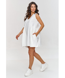 Ta sukienka maxi to połączenie elegancji i wygody, idealna na wiosenne i letnie dni. Wykonana z przyjemnej wiskozy, która zapewnia oddychalność i komfort podczas noszenia. Sukienka ma głęboki dekolt, który podkreśla górną część sylwetki a szerokie ramiączka gwarantują uniwersalność i modny wygląd. Długość maxi optycznie wydłuża sylwetkę a delikatne zakładki, zapewniają lekkość i płynność ruchów nadając sukience dynamiczny a zarazem elegancki charakter. Subtelne rozcięcie z boku wprowadza element zmysłowości i kobiecości. Dzięki niemu sukienka jest wygodna w noszeniu i pozwala na swobodę poruszania się. Sukienka maxi z rozcięciem to synonim klasy i stylu, która sprawdzi się zarówno w stylizacjach casualowych jak i bardziej formalnych w zależności jakie dobierzesz do niej dodatki. Model zaprojektowany w kilku kolorach: czarny, jasny beż, błękitny i oliwkowy.