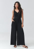 Stylowy kombinezon damski na ramiączkach to idealna propozycja dla kobiet, które szukają połączenia elegancji i wygody. Lekki, lejący materiał pięknie układa się na sylwetce, a podkreślona talia nadaje figurze proporcji i kobiecego charakteru. Subtelny dekolt w serek (V-neck) wysmukla górną część sylwetki i dodaje całości lekkości. Model posiada szerokie nogawki, które zapewniają swobodę ruchów i wpisują się w aktualne trendy. Dzięki temu długi kombinezon damski doskonale sprawdzi się zarówno na co dzień, jak i podczas wyjątkowych okazji. To świetna alternatywa dla sukienki – idealny jako kombinezon na wesele, przyjęcie, wakacyjny wyjazd czy randkę. Uniwersalny fason pozwala na różnorodne stylizacje – w połączeniu z sandałami tworzy lekki, letni look, a ze szpilkami nabiera bardziej eleganckiego charakteru. Jeśli szukasz ponadczasowego modelu, ten modny kombinezon z szerokimi nogawkami będzie doskonałym wyborem.