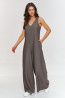 Stylowy kombinezon to świetna propozycja dla kobiet szukających modowego outfitu. Model ma subtelny dekolt w kształcie litery V, który nadaje mu eleganckiego i kobiecego wyglądu oraz dodatkowo podkreśla sylwetkę i optycznie wydłuża szyję, dodając klasy i lekkości. Szerokie nogawki oraz luźny fason sprawiają, że kombinezon jest bardzo wygodny i jednocześnie oryginalny. Model jest zapinany na zamek co ułatwia jego zakładanie, natomiast boczne kieszenie stanowią praktyczny dodatek. Dodatkowym jego atutem jest przyjemny w dotyku i przewiewny materiał co czyni go doskonałą propozycją na ciepłe dni. Dzięki prostemu, ale efektownemu fasonowi, kombinezon nadaje się zarówno na codzienne wyjścia, jak i na bardziej formalne okazje, takie jak spotkania czy wieczorne wyjścia. Można go połączyć z białymi sneakersami na co dzień lub z szpilkami na bardziej eleganckie wydarzenia. Została zaprojektowany w pięciu kolorach: jasny beż, czarny, mokka, malinowy i blue jeans.