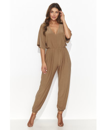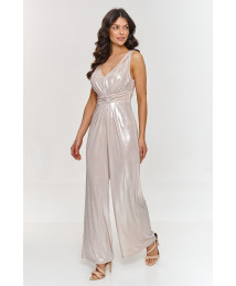 Ten wyjątkowy czarny kombinezon damski to kwintesencja nowoczesnej elegancji. Zaprojektowany z myślą o kobietach, które cenią sobie wygodę, ale nie chcą rezygnować z szyku i klasy, sprawdzi się idealnie na wieczorne wyjście, koktajl party czy elegancką kolację. Góra kombinezonu zachwyca subtelnymi wstawkami z tiulu – długie, półprzezroczyste rękawy i dekolt w kształcie litery V nadają całości lekkości i zmysłowości, jednocześnie pozostając eleganckie i stylowe. Dopasowany krój w talii pięknie podkreśla sylwetkę, a szerokie, proste nogawki dodają całości charakteru i optycznie wydłużają nogi. Zapinany na zamek z tyłu, kombinezon gwarantuje wygodę noszenia oraz idealne dopasowanie do figury. To idealna propozycja dla kobiet, które chcą wyróżnić się w tłumie, wybierając stylową alternatywę dla sukienki wieczorowej.