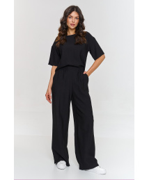 Elegantiškas komplektas su plačiomis kelnėmis juodas M945