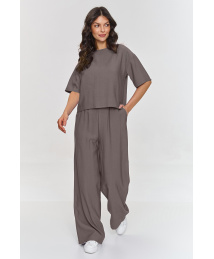 Elegantiškas komplektas su plačiomis kelnėmis moka M945
