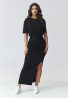 Niezwykle kobieca sukienka maxi z marszczeniem to propozycja dla kobiet, które cenią styl połączony z wygodą. Dopasowany fason pięknie podkreśla sylwetkę, a elastyczny materiał zapewnia komfort noszenia przez cały dzień. Model posiada krótki rękaw oraz klasyczny, zabudowany dekolt, co nadaje mu uniwersalnego charakteru. Efektowne marszczenie w talii i na biodrach optycznie modeluje figurę i podkreśla jej atuty. Dodatkowym elementem jest subtelne rozcięcie na nodze, które nadaje stylizacji lekkości i zmysłowego wykończenia. To idealna dopasowana sukienka na co dzień i na wyjście – sprawdzi się zarówno w casualowych stylizacjach ze sneakersami, jak i w bardziej eleganckim wydaniu z butami na obcasie. Doskonały wybór na spotkania, kolację, przyjęcie czy wyjątkowe okazjes. Jeśli szukasz modelu, który łączy modny krój z kobiecą formą, ta sukienka maxi z rozcięciem będzie doskonałym uzupełnieniem Twojej garderoby.