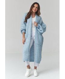 ilgas megztinis moteriskas kardiganas su kisenemis brudny róż S172