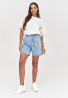Jeansowe szorty damskie z wysokim stanem i ozdobną przywieszką denim C61