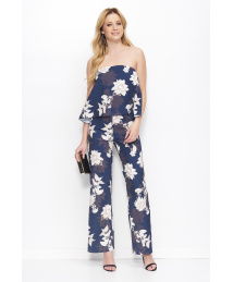 Kombinezonas su raštais tamsiai mėlynos ir koralinės spalvos M383