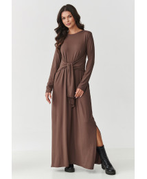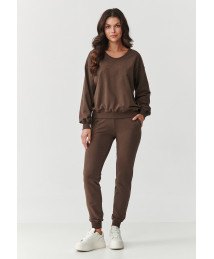 Komplektas dresinis su šiek tiek prigludusiomis kelnėmis ir laisvu džemperiu šokoladinis M891