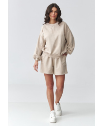komplektas dresowy moteriskas oversize su szortami sviesus beż M922