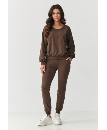 komplektas dresowy su lekko dopasowanymi spodniami ir luźną bluzą sokoladinis M891