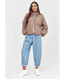 Kurtka damska przejściowa z ozdobną podszewką mokka C58