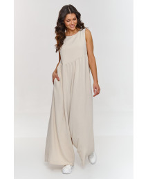Šis maksi kombinezonas – puikus pasirinkimas moterims, ieškančioms patogaus, bet kartu stilingo sprendimo šiltoms dienoms. Jis pasižymi laisvu kirpimu, užtikrinančiu maksimalų komfortą, o ties juosmeniu esantis įstrižas siuvimas sukuria švelnias klostes. Plačios klešnės suteikia visumai lengvumo ir elegancijos, todėl tai idealus variantas kasdieniam stiliui ar vasaros išvykoms. Modelis turi kišenes, kurios suteikia jam funkcionalumo ir praktiškumo. Kišenės yra puikus sprendimas, kai norite turėti po ranka būtiniausius smulkius daiktus, neatsisakydamos elegantiškos išvaizdos. Pagamintas iš orui pralaidžios medžiagos, kuri yra ne tik maloni liesti, bet ir praktiška bei vėsi. Kombinezonas turi apvalią iškirptę, kuri užtikrina patogumą ir stilingą išvaizdą. Mūsų maksi kombinezonas su plačiomis klešnėmis yra puikus pasirinkimas bet kokiai progai, kai norite madingo, bet kartu patogaus sprendimo. Dėl laisvo kirpimo, funkcionalių kišenių ir lengvos medžiagos, kombinezonas taps jūsų mėgstamiausiu pasirinkimu pavasario ir vasaros dienomis, garantuojančiu tiek patogumą, tiek stilių. Galimos spalvos: džinsinė, juoda, šviesiai smėlio ir kūdikių rožinė.