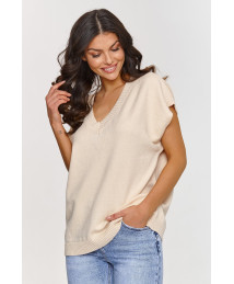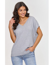 Ta kamizelka swetrowa to stylowy i wygodny element garderoby, który z pewnością doda świeżości każdej stylizacji. Wykonana z miękkiego materiału, zapewnia komfort noszenia przez cały dzień. Dekolt w kształcie V to jeden z najbardziej eleganckich i uniwersalnych fasonów, który delikatnie wydłuża szyję i dodaje lekkości całej stylizacji. Model ma luźny, oversize'owy fason, który idealnie pasuje do różnych typów sylwetek, zapewniając komfort i swobodę ruchów. Krótki rękaw w formie szerokich rękawów wprowadza modny, casualowy akcent, który jest idealny na cieplejsze dni, a także świetnie sprawdza się w warstwowaniu na chłodniejsze dni. Wykonana z mieszanki włókien, w tym PBT, kamizelka ma wyjątkowe właściwości. PBT jest włóknem, które zachowuje swój kształt i strukturę przez długi czas, co sprawia, że nie traci na estetyce i jest bardziej trwały. Dzięki elastyczności PBT, model idealnie dopasowuje się do sylwetki, zapewniając wygodę i komfort przez cały dzień. Model występuję w różnorodnej gamie kolorystycznej: baby pink, błękitny, jasny beż, kobaltowy, limonkowy, pomarańczowy, szary melanż i zółty. Kamizelka swetrowa nie tylko wygląda modnie, ale także jest funkcjonalna i wygodna. Możesz ją łączyć z różnymi elementami garderoby, od casualowych jeansów po eleganckie spódnice, tworząc stylizacje na różne okazje.