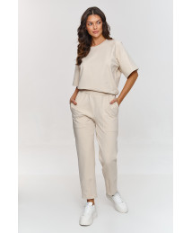 Sporta komplekts ar brīvu blūzi un klasiskām biksēm gaiši bēšs M865
