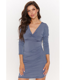 Ta sukienka mini to idealna propozycja dla kobiet, które cenią elegancję w nowoczesnym wydaniu. Dopasowany krój pięknie podkreśla sylwetkę, a elastyczny materiał sprawia, że sukienka doskonale układa się na ciele i zapewnia pełen komfort noszenia. Wyjątkowego charakteru nadają jej marszczenia na całej długości, które optycznie wysmuklają figurę i maskują drobne niedoskonałości. Dzięki temu sukienka nie tylko prezentuje się efektownie, ale także podkreśla kobiece kształty w subtelny i zmysłowy sposób. Model posiada długi rękaw oraz delikatny, łódkowy dekolt, który elegancko eksponuje szyję i obojczyki, zachowując przy tym szykowny, klasyczny wygląd. To idealne rozwiązanie dla kobiet poszukujących balansu pomiędzy nowoczesnym stylem a ponadczasową elegancją. Długość mini dodaje kreacji lekkości i sprawia, że świetnie sprawdzi się ona zarówno podczas wieczornych wyjść, randek, jak i bardziej oficjalnych spotkań. W połączeniu ze szpilkami tworzy zmysłową stylizację, a zestawiona z botkami lub kozakami nabiera bardziej casualowego charakteru. To uniwersalna sukienka, która z powodzeniem sprawdzi się w wielu sytuacjach – na imprezę, kolację, przyjęcie czy rodzinne spotkanie. Dzięki swojej prostocie i elegancji może stać się bazą do wielu różnych stylizacji, w zależności od dobranych dodatków. Zaprojektowana w trzech modowych kolorach: czarny, bordowy i czekoladowy.
