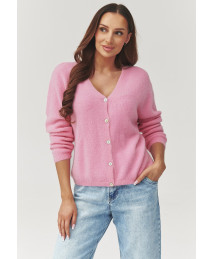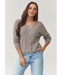 Stilīgs un sievišķīgs sieviešu džemperis ar pogām, kas apvieno komfortu un mūžīgu eleganci. Modelis izgatavots no mīksta un patīkama pieskārienam trikotāžas, nodrošinot komfortu visas dienas garumā. Smalkais V veida kakla izgriezums maigi izceļ figūru un optiski slaidina kaklu. Brīvais UNI izmēra piegriezums lieliski pielāgojas dažādiem figūras tipiem, piedāvājot kustību brīvību un modernu, nedaudz oversize efektu. Džemperis lieliski piemērots gan valkāšanai atsevišķi, gan kā viegls virsvalks virs topa vai kleitas. Modelis pieejams vairākos krāsu variantos, kas ļauj viegli pielāgoties individuālajam stilam un aktuālajām tendencēm. Ideāli piemērots ikdienas, biroja un brīvā laika stilam.