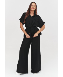 Komplet damski składający się z luźnej bluzki oraz szerokich spodni to idealna propozycja dla kobiet ceniących komfort i elegancję. Bluzka z krótkim rękawem oraz ściągaczem w talii pięknie podkreśla sylwetkę, jednocześnie zapewniając swobodę ruchów. Spodnie o szerokiej nogawce dodają lekkości i nowoczesnego charakteru stylizacji. Ten modny zestaw damski świetnie sprawdzi się zarówno na co dzień, jak i podczas bardziej formalnych okazji. Wykonany z przyjemnego w dotyku materiału, gwarantuje wysoki komfort noszenia przez cały dzień. To doskonały wybór dla kobiet poszukujących uniwersalnej stylizacji, która łączy w sobie minimalizm, wygodę i ponadczasowy design.