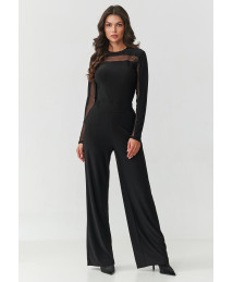 elegantiskas komplektas moteriskas su transparentnymi wstawkami ir szerokimi nogawkami juodas M903