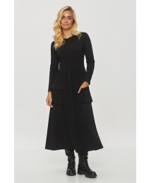 Długa printowa sukienka wykonana z lekkiego, zwiewnego materiału, który nadaje jej eleganckiego i romantycznego wyglądu. Wzór sukienki to złożona mieszanka motywów roślinnych, zwierzęcych i abstrakcyjnych, w kolorach dominujących czarnych, białych, beżowych, brązowych i odcieniach pomarańczu. Wzór jest skomplikowany i jednocześnie oryginalny dodający kreacji wyrazistego stylu. Model ma lekko dopasowaną górę, która podkreśla talię, natomiast dół jest rozkloszowany, co dodaje jej lekkości i ruchu. Wykończenie sukienki jest subtelne, a materiał jest półprzezroczysty, co podkreśla jej delikatność. Sukienka posiada wiskozową podszewkę, która dyskretnie zakrywa strategiczne miejsca i zapewnia komfort podczas noszenia. W połączeniu z ciężkimi butami za kostkę tworzy kontrast z subtelnością sukienki, nadając całości nieco bardziej casualowy wygląd. Sukienka idealnie nadaje się na jesienne lub zimowe wieczory, dzięki swoim ciepłym kolorom i długim rękawom. Kreacja jest dostępna w pięciu wariantach, różniących się kolorem i wzorem.