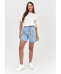 Jeansowe szorty damskie z wysokim stanem i ozdobną przywieszką denim C61