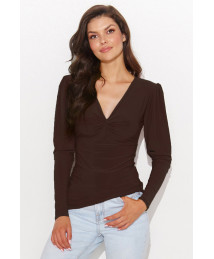 Funkcjonalna bluzka damska wykonana z elastycznej, nieprzezroczystej tkaniny to klasyk wśród bluzek. Dekolt w postaci praktycznego golfu w połączeniu z długim rękawem, otuli w chłodniejsze dni. Natomiast pozłacana blaszka w górnej części pleców, dodaje jej subtelnej elegancji. Dzięki prostej formie, perfekcyjnie odnajduje się w casualowych stylizacjach, które możesz nosić zarówno do biura jak i na wyjścia na miasto. Golf damski doskonale współgra zarówno z dopasowanymi rurkami jak i spodniami typu mom fit. Ta bluzka to połączenie funkcjonalności z elegancją w efekcie dając udany przepis na look. Model występuje w 10 wariacjach kolorystycznych: czarny, camel, czekolada, denim, latte, jasny beż, lila, mokka, malina i czerwień.