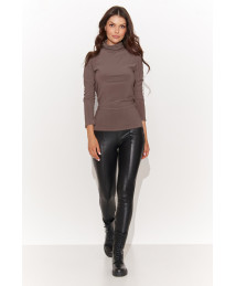 Funkcionālā sieviešu blūze no elastīga, necaurspīdīga auduma ir blūžu klasika. Izgriezums praktiskā augstu apkakles formā apvienojumā ar garām piedurknēm ietērps jūs vēsākās dienās. Tikmēr zeltītā plāksnīte muguras augšējā daļā piešķir smalku eleganci. Pateicoties vienkāršai formai, tas ir lieliski piemērots ikdienas tērpiem, ko varat nēsāt gan uz biroju, gan uz pilsētu. Vīriešu augstu apkakli var lieliski kombinēt gan ar piegrieztām biksēm, gan mammas piegriezuma biksēm. Šī blūze apvieno funkcionalitāti un eleganci, lai izveidotu veiksmīgu izskata recepti. Modelis ir pieejams 10 krāsu variācijās: melnā, kamieļu, šokolādes, džinsa, latte, gaiši bēša, ceriņkrāsas, mokas, aveņu un sarkanā.