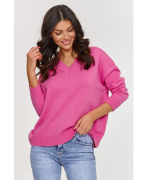 Šis klasiskais džemperis ir lieliska izvēle tiem, kas meklē mūžīgu apģērbu, kas apvieno eleganci ar komfortu. Izgatavots no augstas kvalitātes viskozes ar PBT piejaukumu, tas nodrošina ne tikai patīkamu valkāšanu, bet arī izcilu izturību un noturību pret burzīšanos. V veida kakla izgriezums smalki izceļ kaklu, piešķirot kopējam tēlam vieglumu un eleganci, savukārt brīvais piegriezums un garās piedurknes padara to par ērtu garderobes elementu. Piedurkņu un apakšmalas rievojums piešķir modernu izskatu un nodrošina, ka džemperis labi saglabā formu. Viskoze ir ādai draudzīgs, elpojošs un mīksts materiāls, ideāli piemērots jebkuram gadalaikam. Savukārt PBT (polibutilēna tereftalāts) ir sintētiska šķiedra, kas palielina materiāla elastību, uzlabojot tā izturību pret stiepšanos un burzīšanos. Pateicoties PBT, džemperis ilgāk saglabā savu formu un ir viegli kopjams. Pateicoties elegantā V veida kakla izgriezuma un elastīgā materiāla kombinācijai, džemperis ir ļoti daudzpusīgs. To var kombinēt ar džinsiem, svārkiem vai elegantām biksēm, radot ikdienišķus vai formālākus stilus. Modelis pieejams plašā un modernā krāsu paletē: maigi rozā, gaiši zila, gaiši bēša, kobalta zila, laima zaļa, oranža, pelēks melanžs un dzeltena.
