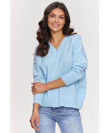 Klasisks viskozes džemperis ar V veida izgriezumu kobalta krāsā S158