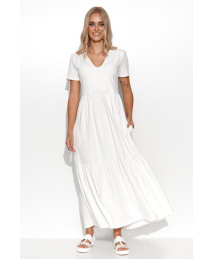 Kleitas neapšaubāmi ir viens no sievišķīgākajiem apģērba gabaliem sieviešu garderobē. Nav brīnums, jo tieši tās piešķir šarmu un meitenīgu pievilcību. Maksi kleita no trikotāžas auduma ir šūta ļoti klasiskā piegriezumā, kas gandrīz katru sievieti pārvērš par smilšu pulksteņa figūru. Ērts trikotāžas audums nodrošina brīvības sajūtu, īsās piedurknes nosedz plecus to platākajās vietās. V veida kakla izgriezums pagarina kaklu, savukārt apdare ap vidukli izceļ sievietes figūras slaidāko daļu, piešķirot vieglumu. Viegli volāni, kas izvietoti vairākās vietās visā kleitas garumā, piešķirs romantisku raksturu jebkuram tērpam, kurā šī kleita spēlēs galveno lomu. Vienkrāsainai maksi kleitai nav nepieciešams daudz aksesuāru, lai gan tā labprāt pieņems daudzus no tiem. Sportiski, ar iecienītāko jostas somu un tenisa apaviem, vai eleganti, ar augstpapēžu kurpēm un vakara somiņu. Kleita ir pieejama vairākās krāsu versijās.