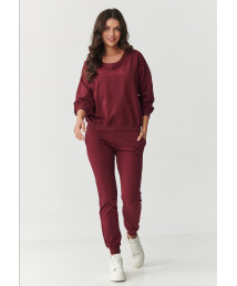 komplektas dresowy su lekko dopasowanymi spodniami ir luźną bluzą bordo M891