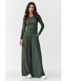 komplektas viskozinis su marszczoną bluzką ir szerokimi spodniami chaki M892