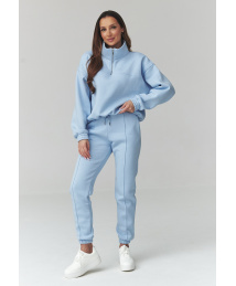Stilīgs sieviešu sporta tērps UNI izmērā ir ideāla komforta un moderna izskata kombinācija. Izgatavots no mīksta, patīkama pieskārienam trikotāžas, tas lieliski noderēs gan ikdienā, gan nedēļas nogales atpūtai vai ceļojumiem. Klasiskās krāsas piešķir universālu raksturu un viegli saskaņojamas ar dažādiem stiliem. Papildu komplekta priekšrocība ir dekoratīvās šuves, kas stiepjas gar bikšu starām, optiski pagarinot kājas. Brīva piegriezuma džemperis ar īsu rāvējslēdzēju pie kakla un regulējamām aukliņām apakšā nodrošina ērtu valkāšanu un modernu, sportiski ikdienišķu izskatu. Sporta bikses ar elastīgu jostasvietu un sašaurinātām starām, kas beidzas ar manšetēm, uzsver mūsdienīgumu.