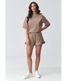 Stylowy komplet damski z szortami to idealna propozycja dla kobiet, które cenią wygodę i nowoczesny, minimalistyczny styl. Zestaw składa się z luźnej koszulki o swobodnym kroju oraz komfortowych szortów z elastyczną talią, tworząc spójny i ponadczasowy look. Ten letni komplet damski doskonale sprawdzi się na co dzień – na spacer, zakupy, wakacyjny wyjazd czy jako wygodny strój domowy. Dzięki uniwersalnemu fasonowi możesz nosić go jako gotową stylizację lub łączyć elementy osobno, tworząc różnorodne outfity. Koszulka o prostym kroju zapewnia swobodę ruchów i komfort noszenia, natomiast szorty z wygodnym pasem idealnie dopasowują się do sylwetki. To modny komplet casual damski, który łączy funkcjonalność z aktualnymi trendami. Jeśli szukasz wygodnego i stylowego rozwiązania na cieplejsze dni, ten komplet na lato damski będzie doskonałym wyborem. To również świetna alternatywa dla klasycznego dresu – lekka, przewiewna i niezwykle komfortowa.
