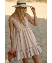 Krótka letnia sukienka z wiązaniem na ramiączkach jasny beż M818