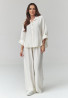 Stilīgs sieviešu komplekts modernās krāsās ir ideāls piedāvājums pavasarim un vasarai. Komplektā ietilpst brīvs krekls ar pogām un platās bikses ar elastīgu jostasvietu, kas garantē maksimālu komfortu un kustību brīvību. Izgatavots no viegla, gaisa caurlaidīga materiāla. Audums ir mīksts, elpojošs un patīkams ādai, nodrošinot komfortu visas dienas garumā. Šis sieviešu komplekts ar kreklu un biksēm ir lielisks pamats daudziem stiliem. Kombinējiet to ar sporta apaviem, sandalēm vai čībām, lai radītu ikdienas izskatu, vai pievienojiet elegantus aksesuārus, lai iegūtu šikāku efektu.
