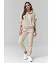 Moderns un ērts sieviešu sporta kostīms ir ideāls piedāvājums sievietēm, kuras novērtē ikdienas stilu un valkāšanas komfortu. Komplektā ietilpst džemperis ar kapuci, kas aizdarāms ar rāvējslēdzēju, un pieskaņotas sporta bikses ar kabatām. Tas ir lielisks sieviešu sporta tērps ikdienai, pastaigām, iepirkumiem, ceļojumiem vai atpūtai mājās. Džemperim ir praktisks rāvējslēdzējs, kas atvieglo uzvilkšanu. Tas ir ideāls sieviešu džemperis ar kapuci, kas piemērots gan sportiskam, gan pilsētas stilam. Biksēm ir ērta gumija jostasvietā, kas nodrošina labu piegulšanu figūrai. Sašaurinātas staras ar aprocēm uzsver komplekta sportisko raksturu un optiski slaidina kājas. Šis sieviešu sporta kostīms ar kapuci ir stila, komforta un funkcionalitātes apvienojums. Jūs varat to valkāt kā komplektu vai veidot atsevišķus tēlus, kombinējot džemperi un bikses ar citiem apģērbiem.