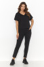 Elegants un reizē ērts adīts komplekts, kas apvieno "oversize" blūzi ar garām biksēm. Brīva blūze ar platām, īsām piedurknēm, rotāta ar burvīgu plāksnīti, harmoniski sader ar piegulošām garām "skinny" tipa biksēm, kas apdarinātas ar šuvēm visā garumā. Biksēm ir praktiskas sānu kabatas. Šajā komplektā jutīsieties brīvi un pārliecināti, vienlaikus saglabājot eleganci. Lieliski piemērots valkāšanai darbā, un, ja vēlaties atstāt iespaidu, noteikti kombinējiet to ar augstpapēžu kurpēm. Pieejams krāsās: gaiši bēšs, melns, šokolādes, šis komplekts ir lieliska jutekliska stila un komforta kombinācija pārliecinātām sievietēm.