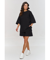 Luźna długa sukienka z krótkim rękawem, dodająca wdzięku i ponadczasowego stylu. Sukienka zachwyca rozcięciem z przodu, dodając nuty subtelnej elegancji, a w linii talii zdobi ją ozdobna złota blaszka, delikatnie skupiająca uwagę na kobiecej sylwetce. Dekolt w serek podkreśla szyję i obojczyki, nadając sukience kobiecego uroku. Jednocześnie bardzo swobodny fason sprawia, że sukienka jest idealnym wyborem na letnie dni, gwarantując nie tylko nienaganną prezencję, ale również komfort noszenia. Dostępna w różnorodnych kolorach, takich jak: czarny, czekoladowy, khaki, jasny beż, mineralny i koralowy, to doskonała propozycja dla kobiet ceniących wygodę i modę niezależnie od trendów.
