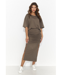 Elegantiškas, bet kartu ir patogus megztas komplektas, kuriame dera „oversize“ palaidinė ir ilgos kelnės. Laisva palaidinė su plačiomis, trumpomis rankovėmis, papuošta žavinga detale, harmoningai dera su prigludusiomis ilgomis „skinny“ tipo kelnėmis, išbaigtomis siūlėmis per visą ilgį. Kelnės turi praktiškas šonines kišenes. Su šiuo komplektu jausitės laisvai ir pasitikėsite savimi, išlaikydamos eleganciją. Puikiai tinka dėvėti darbe, o jei norite padaryti įspūdį, būtinai derinkite jį su aukštakulniais. Galimas spalvų pasirinkimas: šviesiai smėlio, juoda, šokolado, šis komplektas yra puikus jausmingo stiliaus ir patogumo derinys pasitikinčioms savimi moterims.