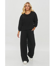 Prašmatnus juodas rinkinys su elegantišku, prigludusiu kirpimu. Palaidinė ilgomis rankovėmis ir aukšta iškirpte, kad atrodytų rafinuotai ir aptakiai. Palei priekį ir nugarą einanti siūlė sukuria klostę, kuri suteikia tekstūros ir efektyviai formuoja siluetą. Kelnių klešnės yra siaurėjančios, taip pabrėžiant pritaikytą išvaizdą ir modernų stilių. Lygus audinys su lengvu blizgesiu suteikia žavesio ir tinka bet kada ir bet kur. Šio modelio sukirpimas pabrėžia liemenį ir visai aprangai suteikia jausmingumo. didžiausių formavimo drabužių rinkinys moterims atskleis giliausiai paslėptus seksualumo ir pasitikėjimo savimi sluoksnius. Puikiai tiks drąsioms moterims ir tikroms mados mylėtojoms.