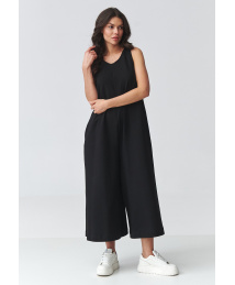 Stylowy kombinezonas moteriskas su szerokimi nogawkami juodas M919