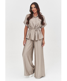 Postaw na wygodę i nowoczesny styl dzięki temu wyjątkowemu kompletowi damskiemu. Zestaw składa się z lekkiej, luźnej bluzki oraz komfortowych spodni o swobodnym kroju, które doskonale układają się na sylwetce. To idealna propozycja dla kobiet ceniących modę casualową, funkcjonalność i ponadczasowy design. Bluzka o prostym fasonie zapewnia pełną swobodę ruchów i świetnie sprawdzi się zarówno na co dzień, jak i podczas spotkań w mniej formalnym stylu. Spodnie z elastyczną talią i wiązaniem gwarantują idealne dopasowanie oraz wysoki komfort noszenia przez cały dzień. Dzięki uniwersalnemu krojowi komplet doskonale wpisuje się w aktualne trendy, tworząc stylizacje idealne na spacer, zakupy czy wyjazd.
