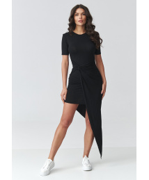 Stilinga asimetrinė suknelė – tai tobulas elegancijos ir modernaus dizaino derinys. Prigludęs kirpimas gražiai pabrėžia figūrą, o efektingas raukimas ties juosmeniu modeliuoja siluetą ir suteikia aprangai išskirtinio charakterio. Trumpomis rankovėmis ir patogus, elastingas audinys leidžia šiai rauktai suknelei puikiai tikti tiek kasdienai, tiek ypatingoms progoms. Asimetrinis apačios kirpimas su pailginta detale suteikia lengvumo ir originalumo, todėl elegantiška suknelė patraukia dėmesį ir atitinka naujausias mados tendencijas. Ji pabrėžia moteriškumą ir puikiai dera tiek su aukštakulniais, tiek su sportine avalyne, sukurdama madingą smart casual stiliaus įvaizdį. Tai idealus pasirinkimas vakarėliams, pasimatymams, šeimos šventėms ar vakariniams išėjimams. Jei ieškote aprangos, kuri derina patogumą ir eleganciją, ši prigludusi suknelė su asimetrine apačia bus puikus pasirinkimas.