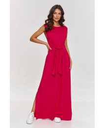 Suknelė maxi su diržu juosmenyje avietinė M873