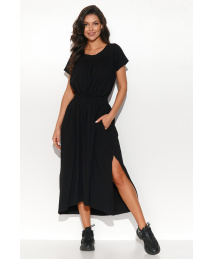 Sukienki to niewątpliwie jedne z najbardziej kobiecych części damskiej garderoby. Nic dziwnego, to właśnie one dodają powabu i dziewczęcego czaru. Sukienka maxi dzianinowa uszyta została w bardzo klasycznym fasonie, który z niemal każdej kobiety czyni klepsydrę. Wygodna dzianina zapewnia uczucie swobody, krótki rękaw zakrywa ramiona w ich najszerszych obszarach. Dekolt typu v-neck wydłuża szyję, z kolei obszycie w okolicach talii, podkreśla najszczuplejszy obszar kobiecej sylwetki, dodając lekkości. Lekkie falbany, umiejscowione w kilku miejscach na całej długości sukienki, dodadzą romantycznego charakteru każdej stylizacji z tą kreacją w roli głównej. Maxi sukienka w jednolitym kolorze nie potrzebuje wielu dodatków, chociaż także chętnie przyjmie wiele z nich. Na sportowo, z ulubioną nerką i tenisówkami lub elegancko, ze szpilkami i kopertówką. Sukienka dostępna jest w kilku wersjach kolorystycznych.
